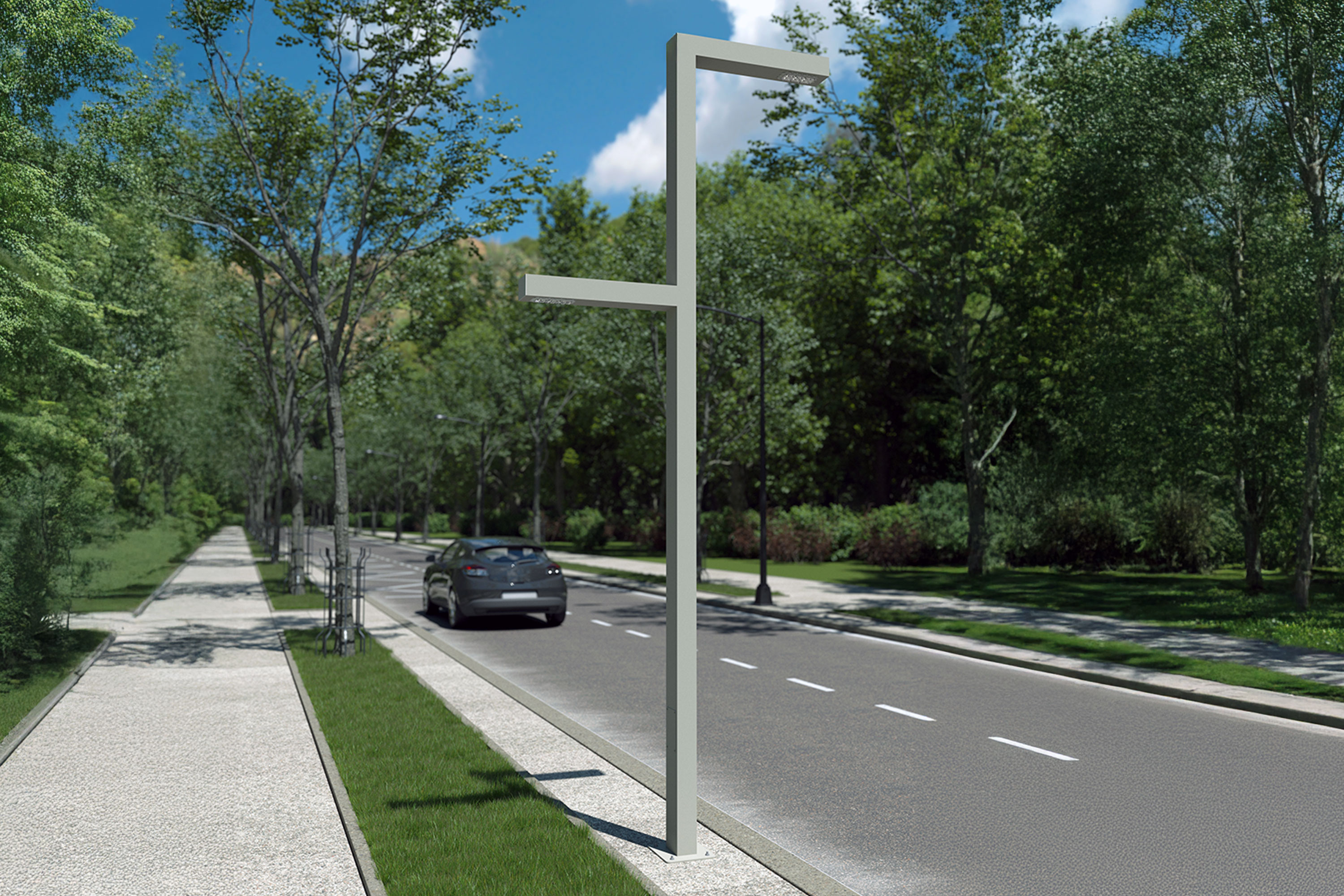 Displaying maximum strength outdoors with its durable body structure, City L Pole is designed specially for landscaping areas. Integrating easily with the architectural area designs, this product ensures optimal lighting thanks to its efficient LED technology.